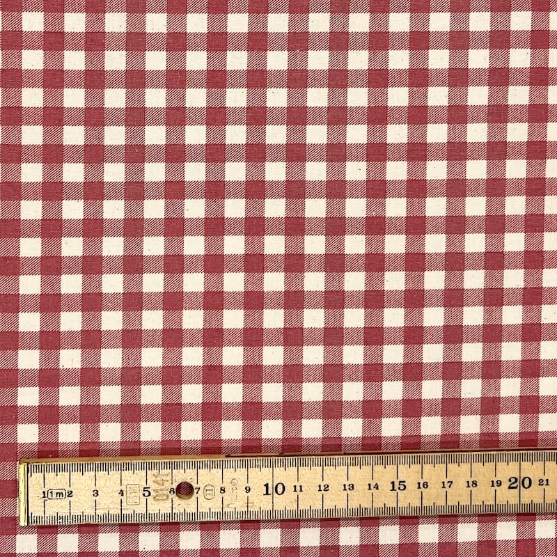 100% Cotton Cretonne Gingham – Dark Pink/Ecru