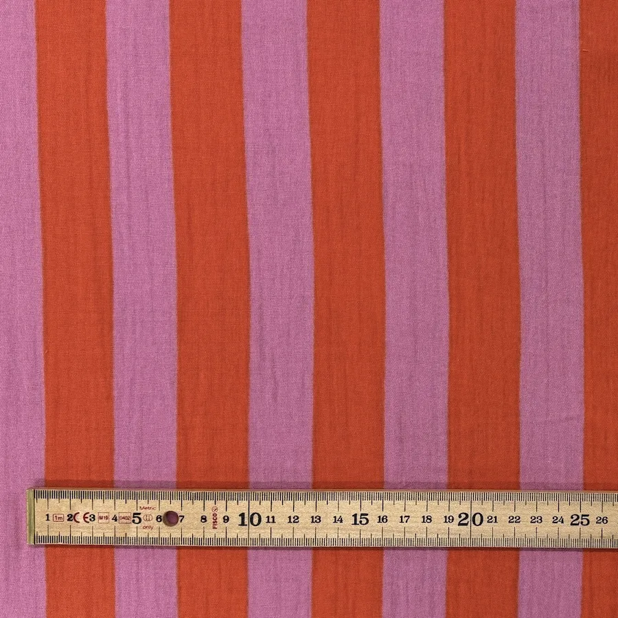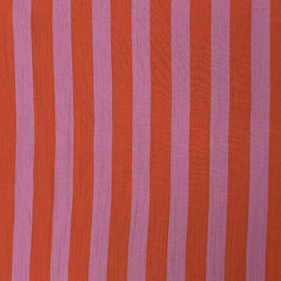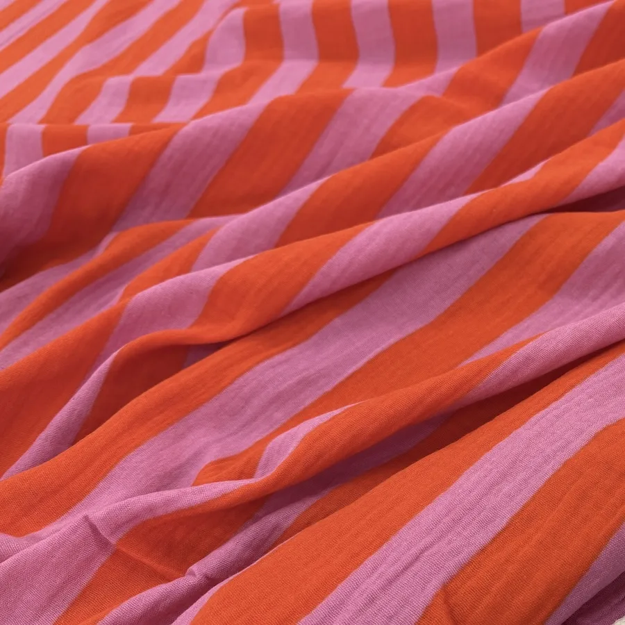 100% Cotton Double Gauze – Pink/Orange Stripes