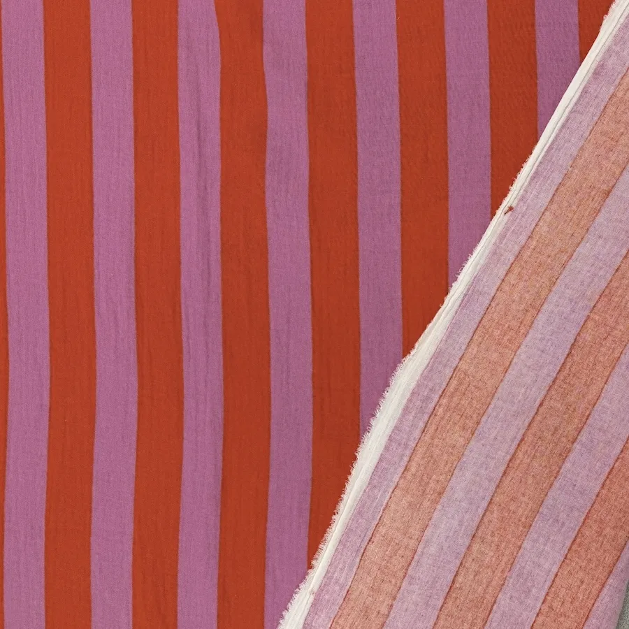 This beautiful double gauze with a bold stripe design and is lightweight and breathable, subtly textured and soft to the touch. An ideal choice for blouses, tops, summer dresses, children’s clothes, pyjamas, accessories and so much more!