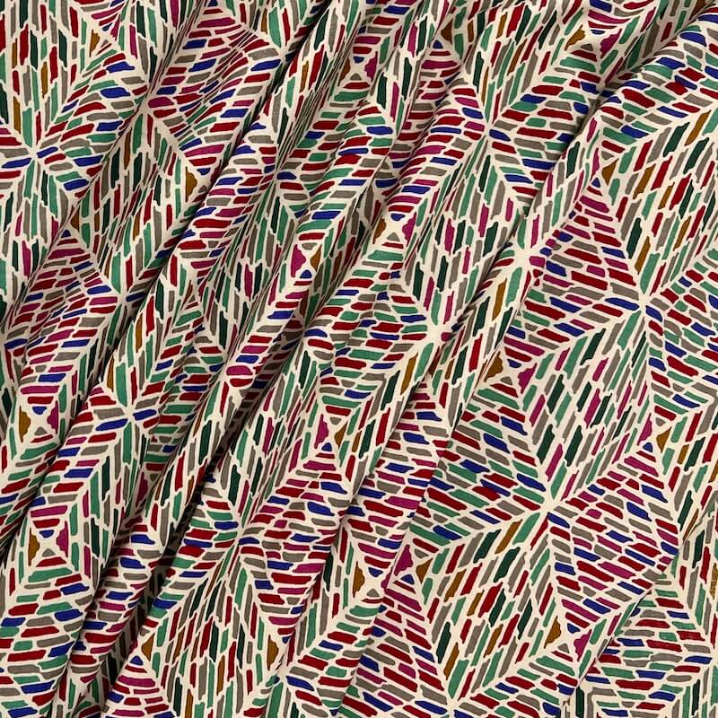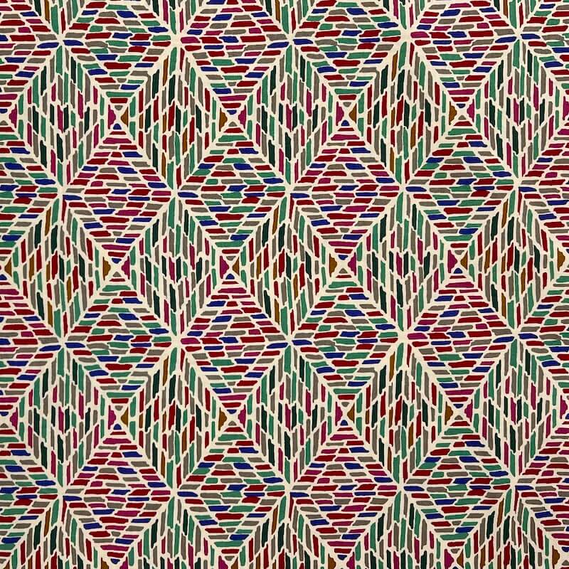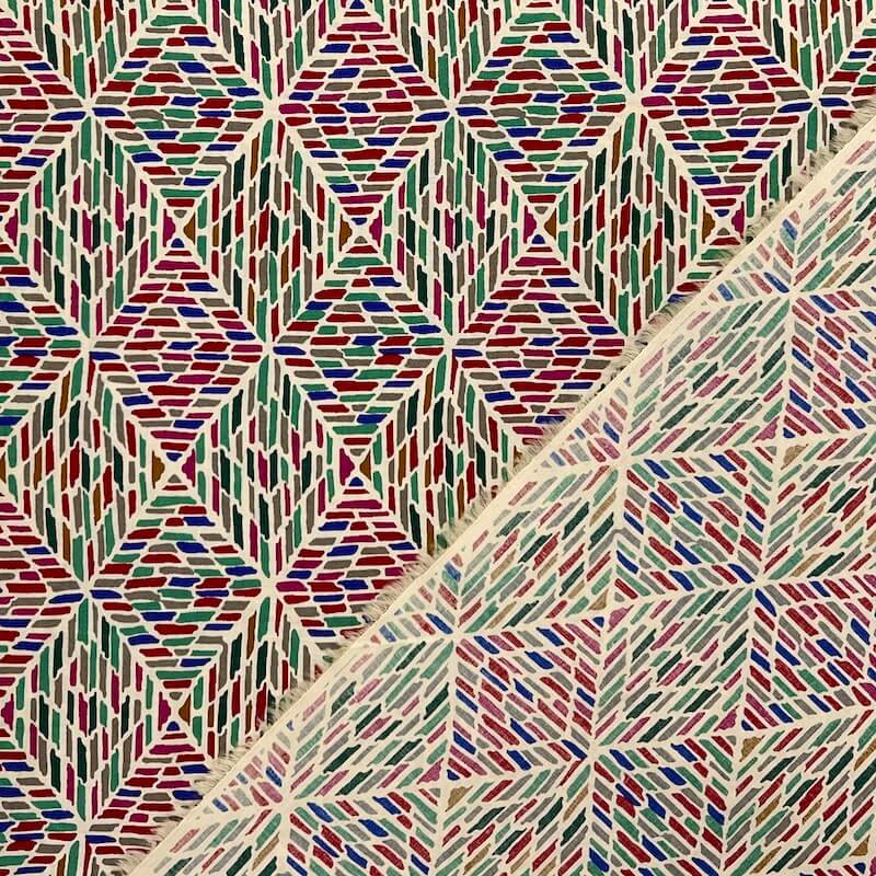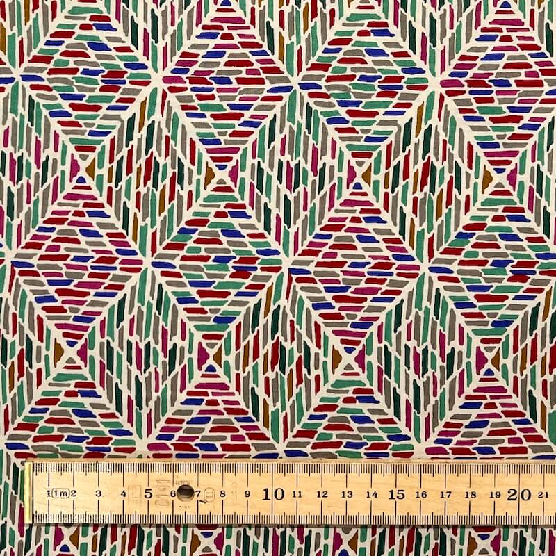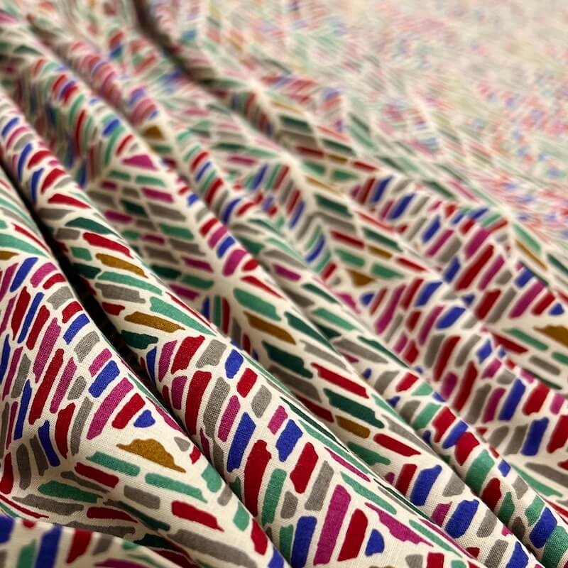A stunning lightweight 100% cotton lawn fabric with a diamond design made up of hand drawn lines in gentle, complementary tones.
