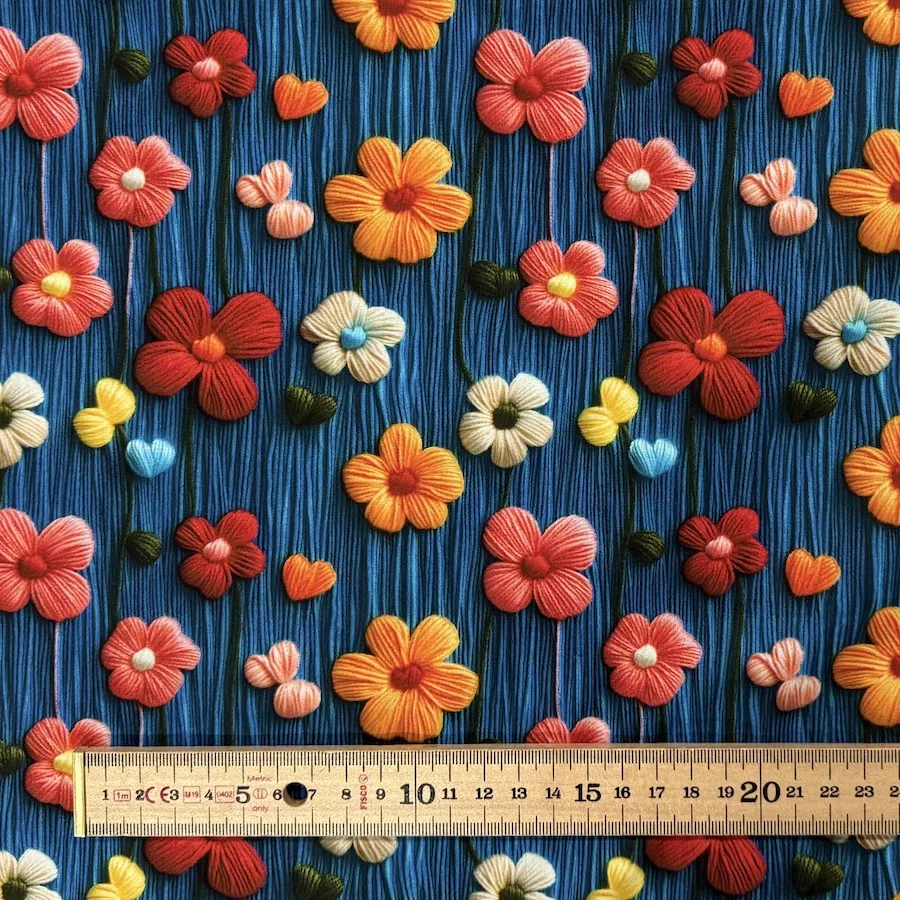 This smooth 100% cotton is printed with a design that tricks your eyes into believing the fabric is embroidered with colourful flowers.