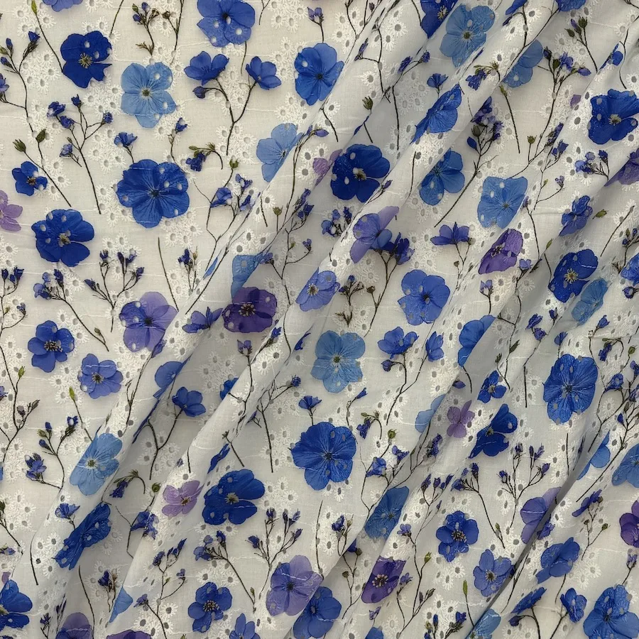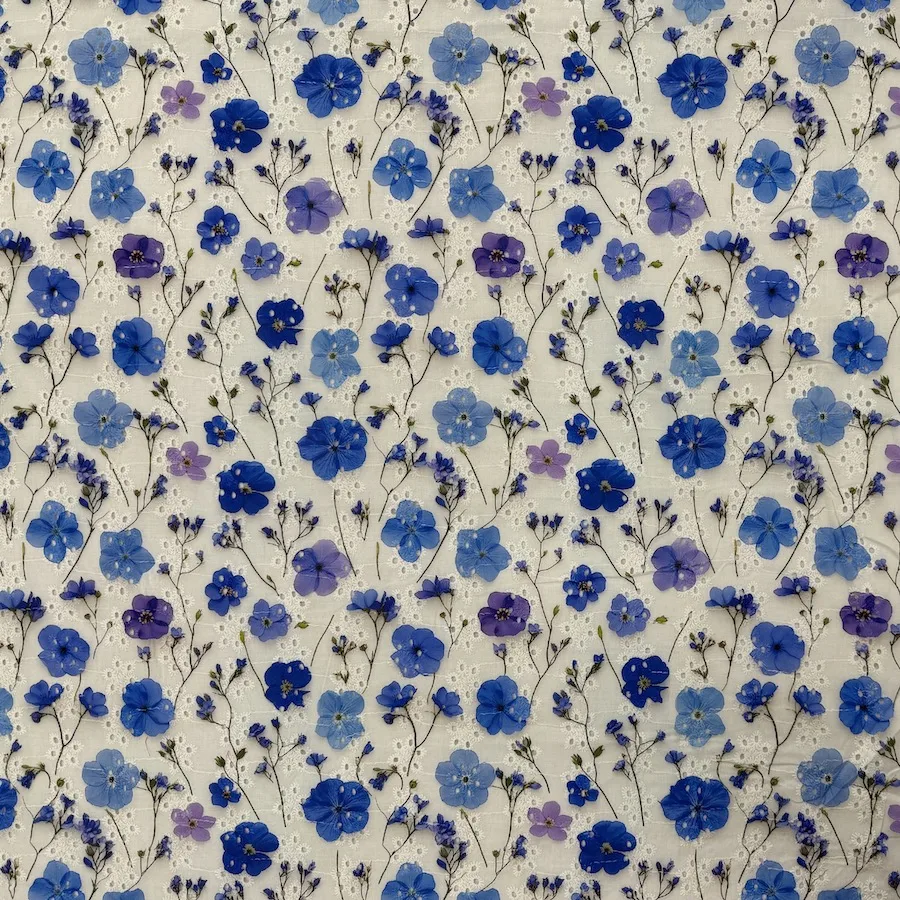 100% Cotton Printed Broderie Anglaise – Wildflowers on White