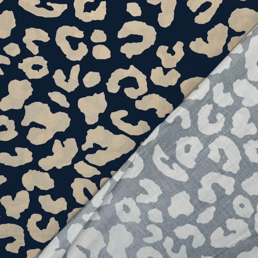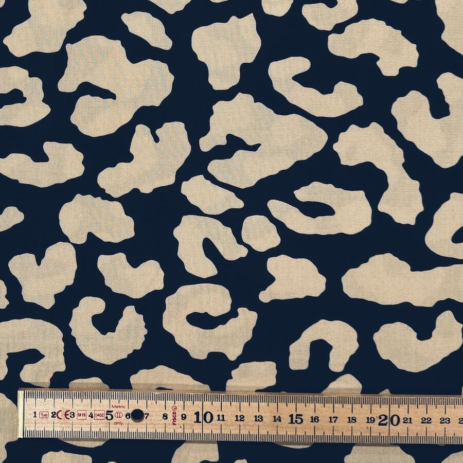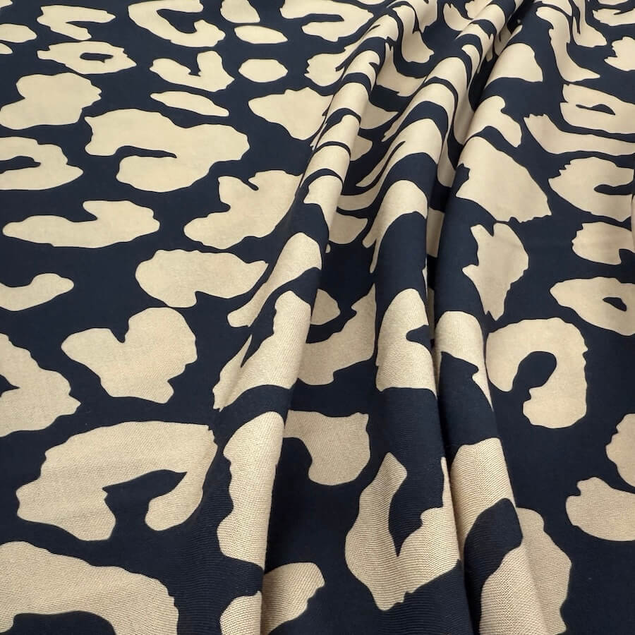 This gorgeous 100% viscose fabric is printed with a classic leopard skin design in an even more classic black/beige colour.