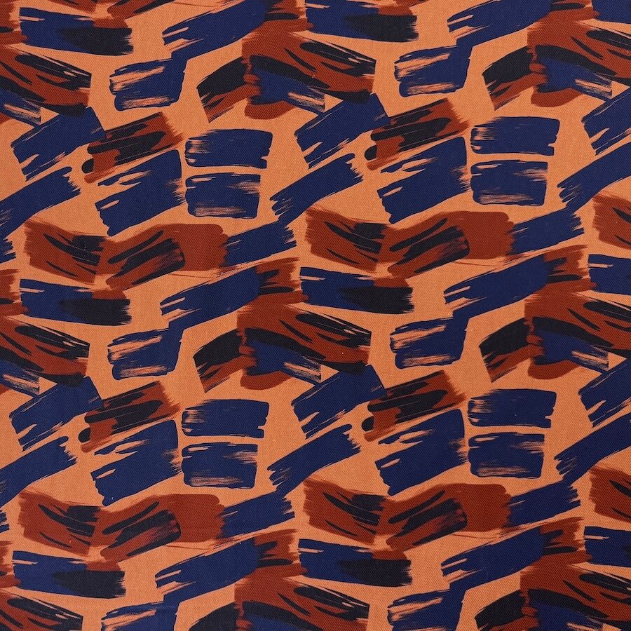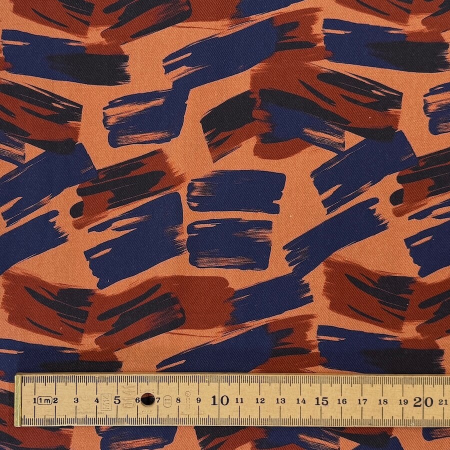 Cotton Viscose Twill – Navy and Terracotta Brushstrokes