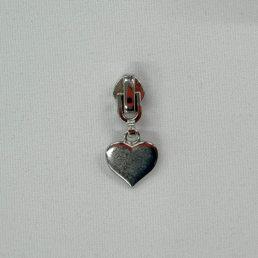 This sweet heart shaped zip pull/slider has a bright silver finish.
