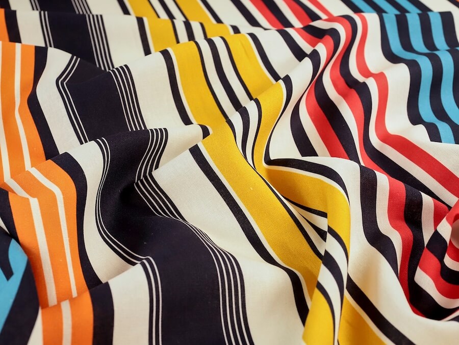 This wonderful multi stripe dressmaking fabric from Fabric Godmother is printed on a fantastic soft viscose linen dressmaking fabric with subtle slubs and plenty of drape.