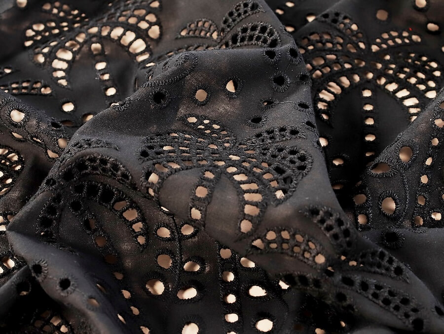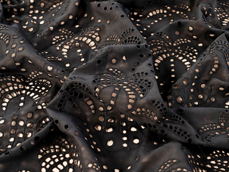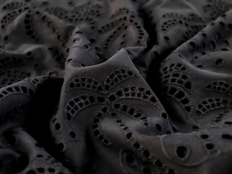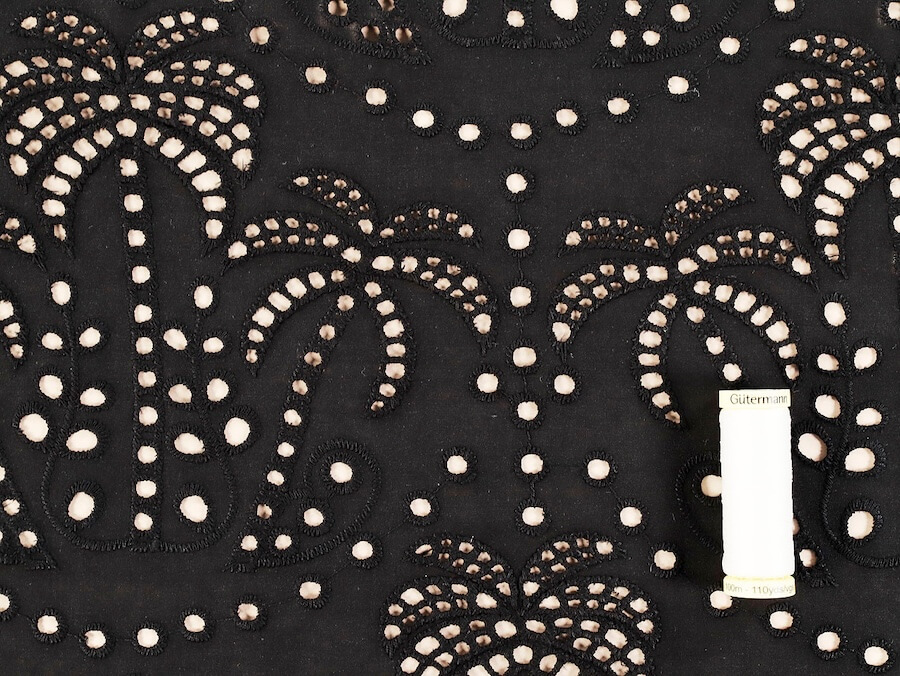 Fabric Godmother Palm Tree Cotton Broderie Anglaise – Black