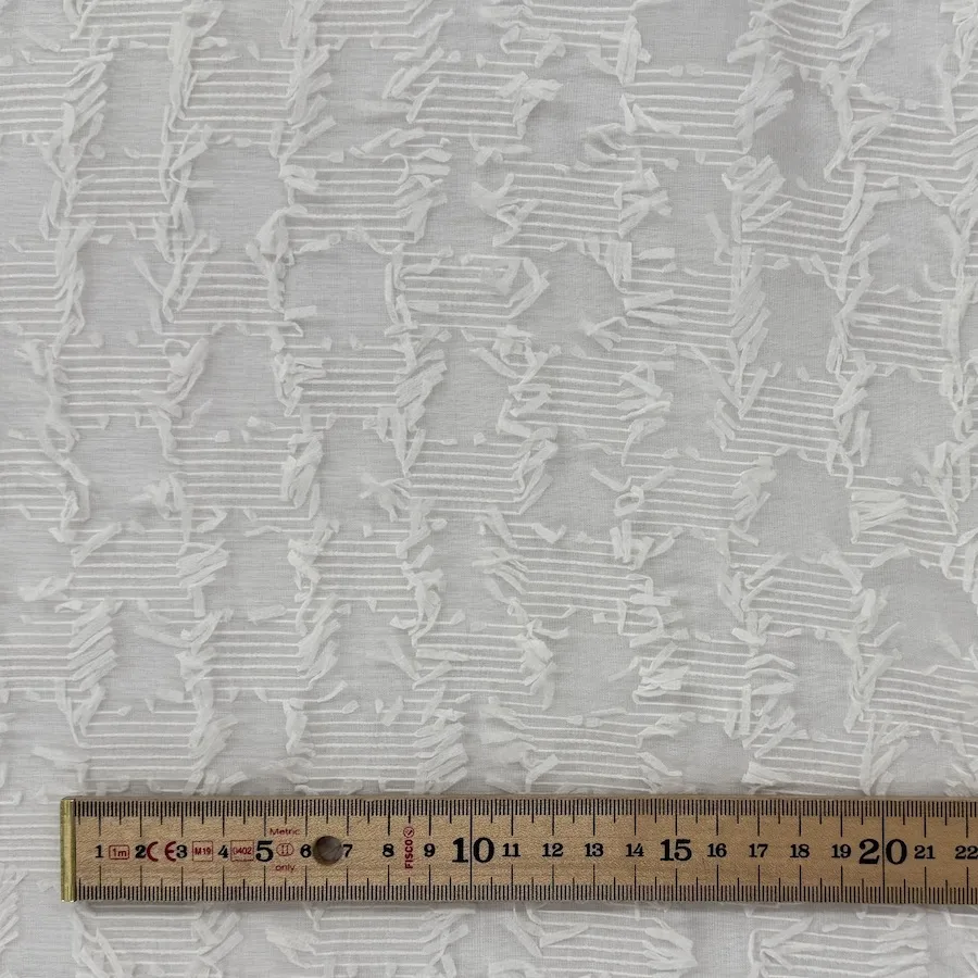 This beautiful, lightweight off white coloured poly cotton has a wonderfully unique feathered texture.