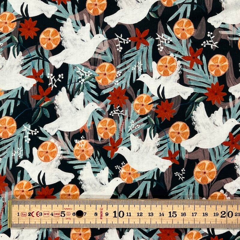 A beautiful print featuring doves and orange slices from the Spice collection by Chloe Hall for Dashwood Studio.