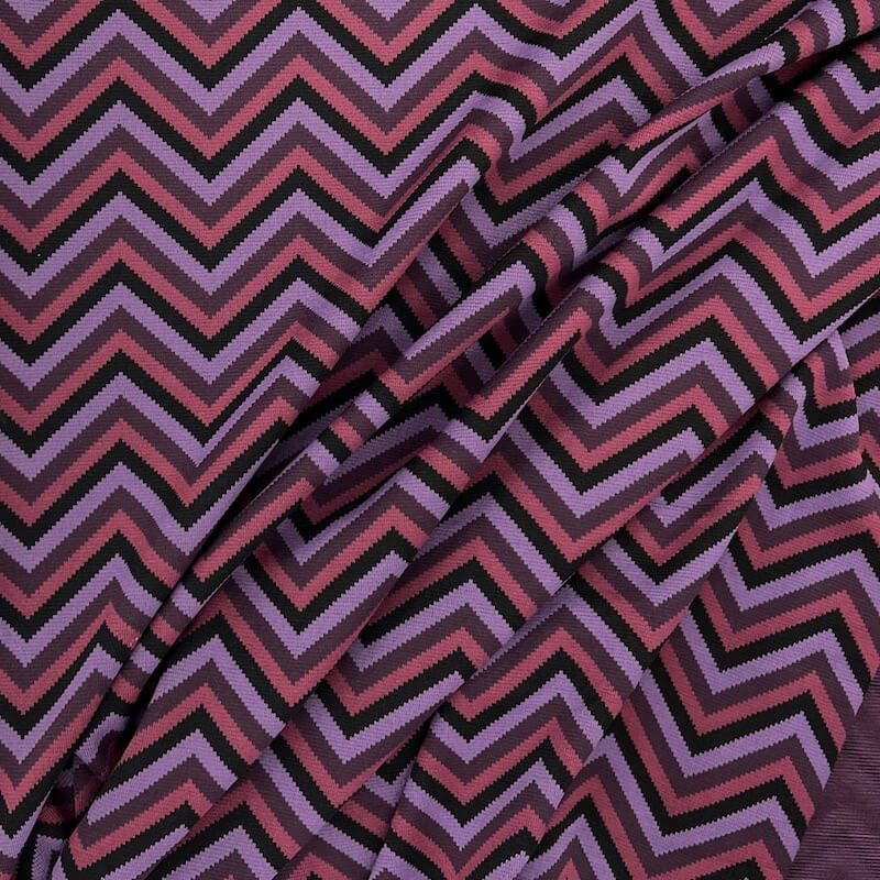 This retro vibe jacquard jersey has a chevron design in shades of purples and pink.