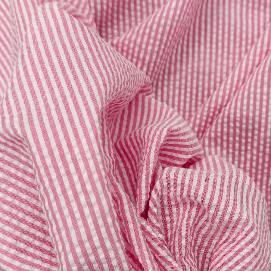 Lightweight Seersucker – Pink/White Stripes