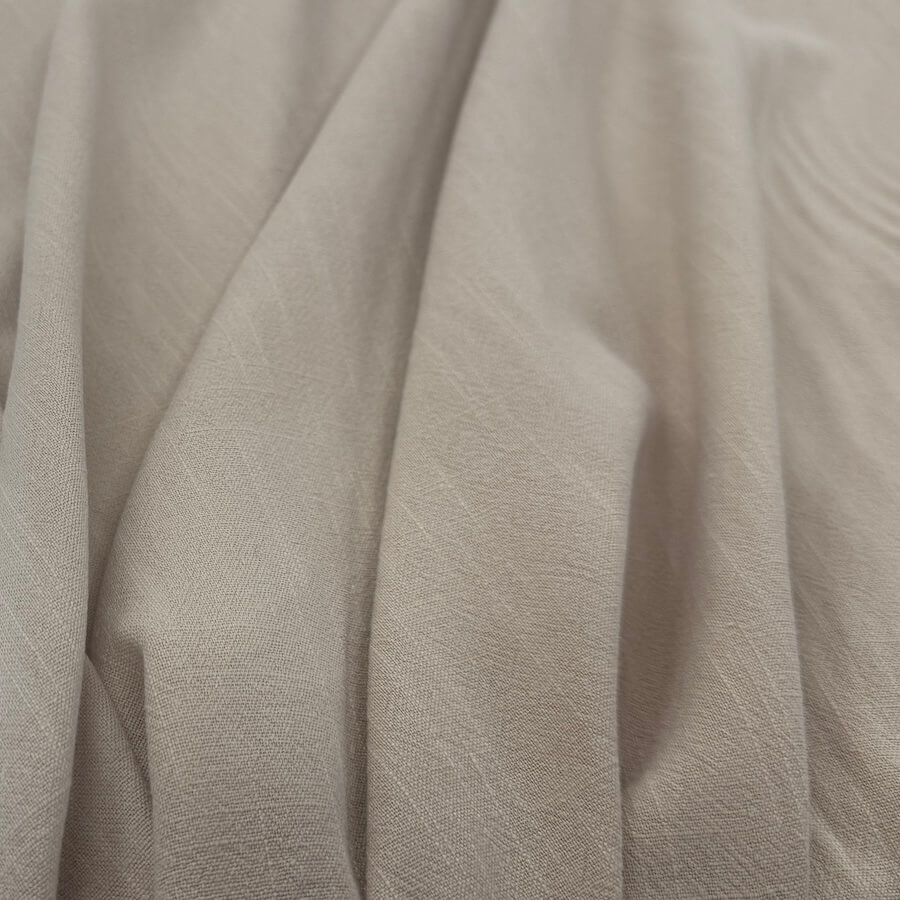 It is a non-stretch fabric that has the wonderful drape of a viscose alongside the subtle texture of linen.