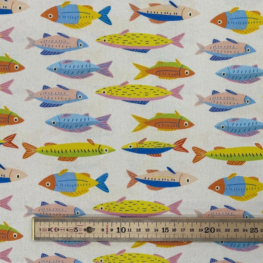 This 100% cotton fabric is printed with a colourful design featuring lots of fabulous fish!