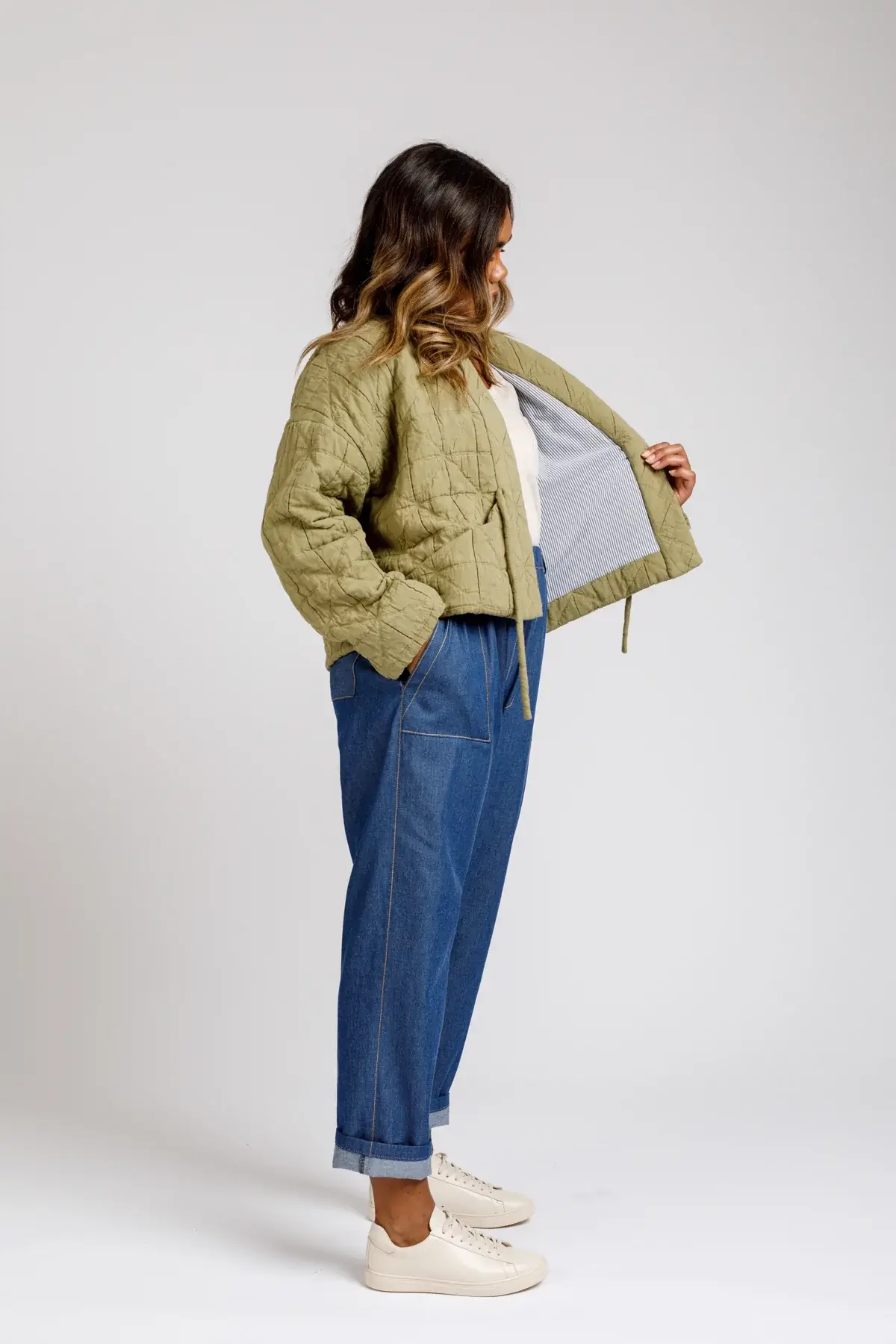 Hovea is a loose fit drop shoulder jacket & coat. This pattern features multiple lengths; deep angled feature pockets; unlined, full lining or quilted options; and belt or tie closures.