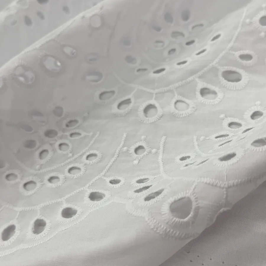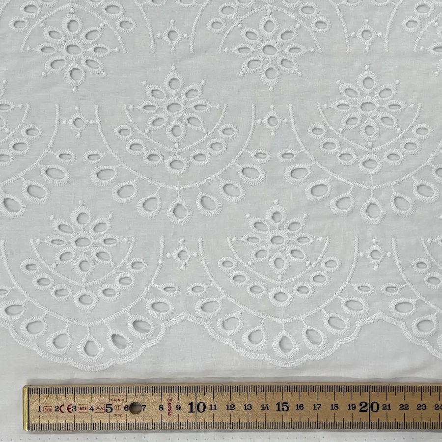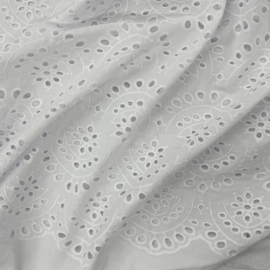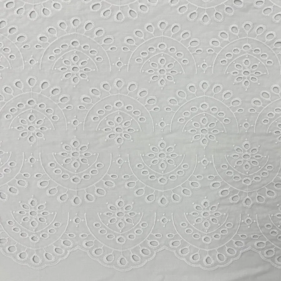 A beautiful lightweight 100% Cotton featuring featuring semi circles of embroidered eyelets.