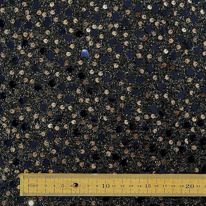 Sequin Fabric – Navy/Rose Gold on Black Lurex