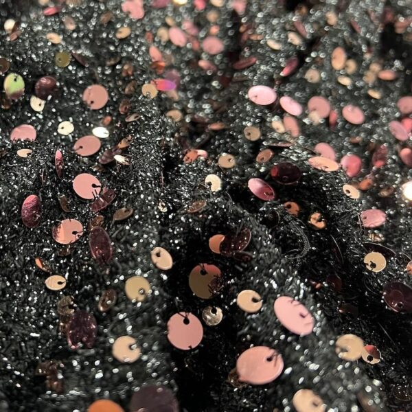 Sequin Fabric – Pink/Rose Gold on Black Lurex