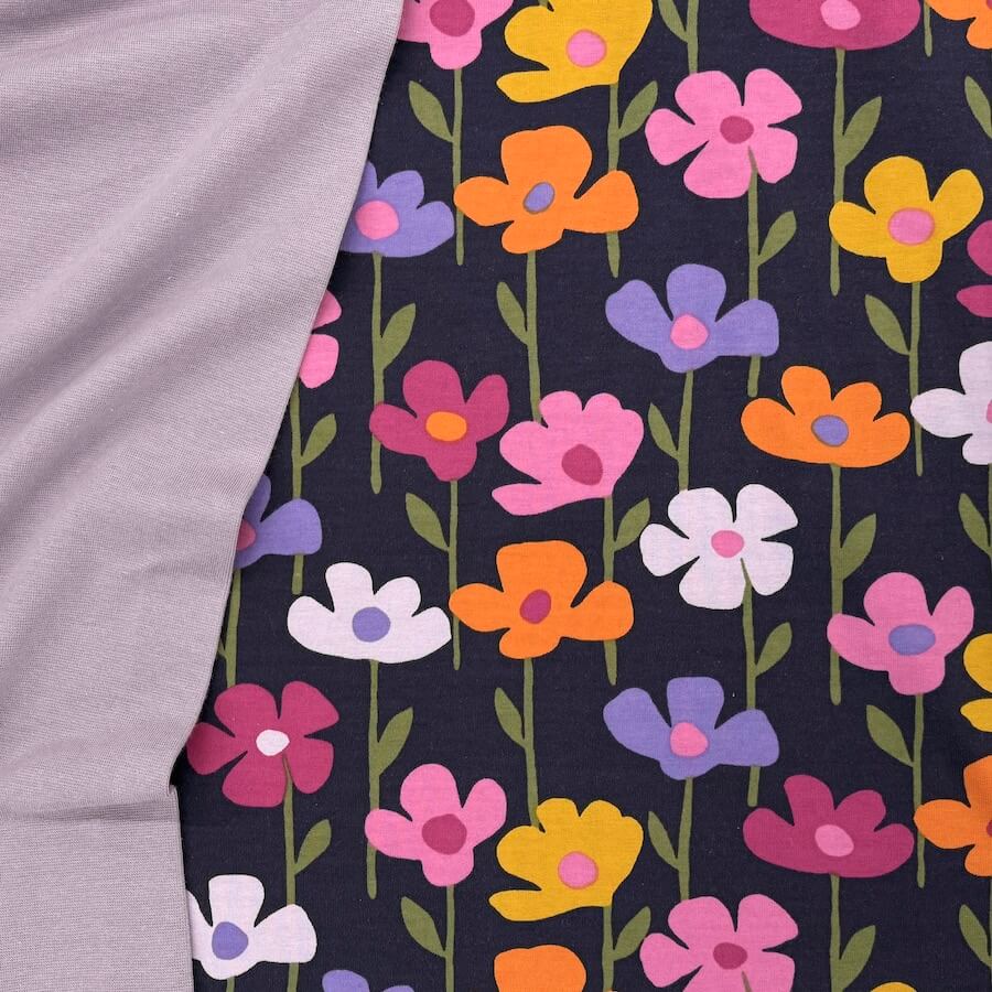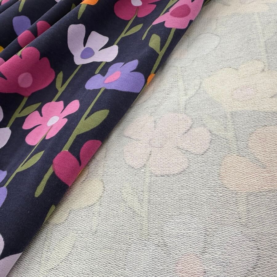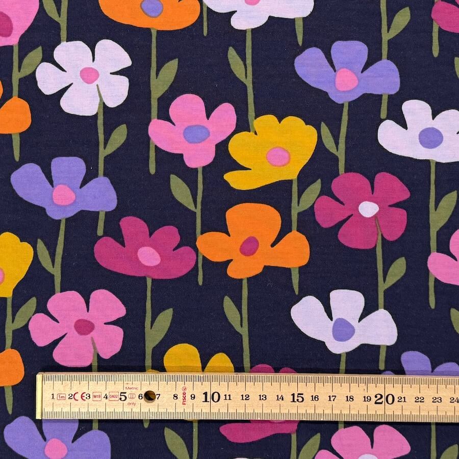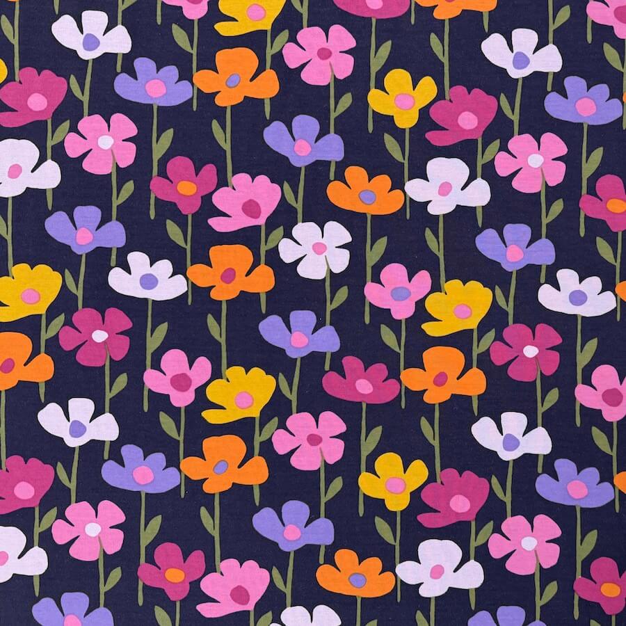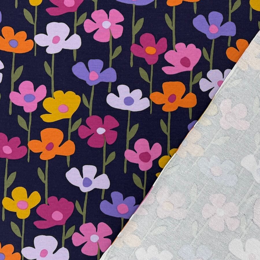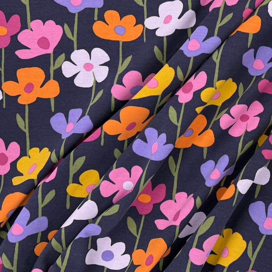 Soft Loop Back French Terry Jersey – Bright Flowers on Navy