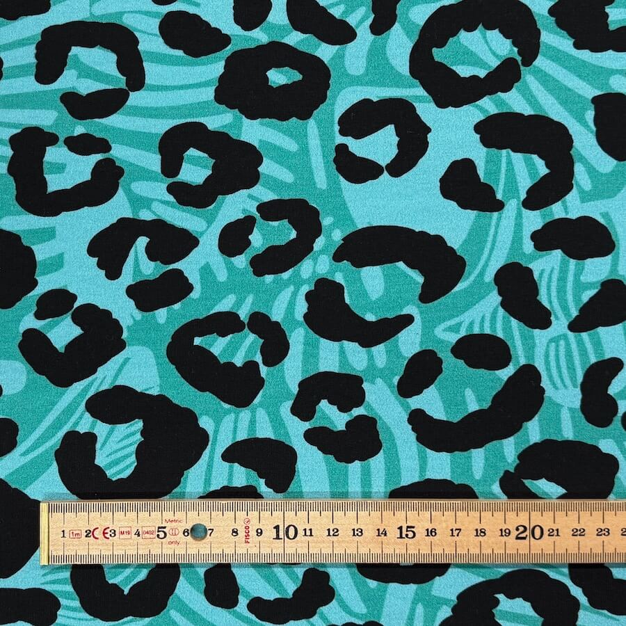 Soft Loop Back French Terry Jersey – Leopard Print – Ocean/Black