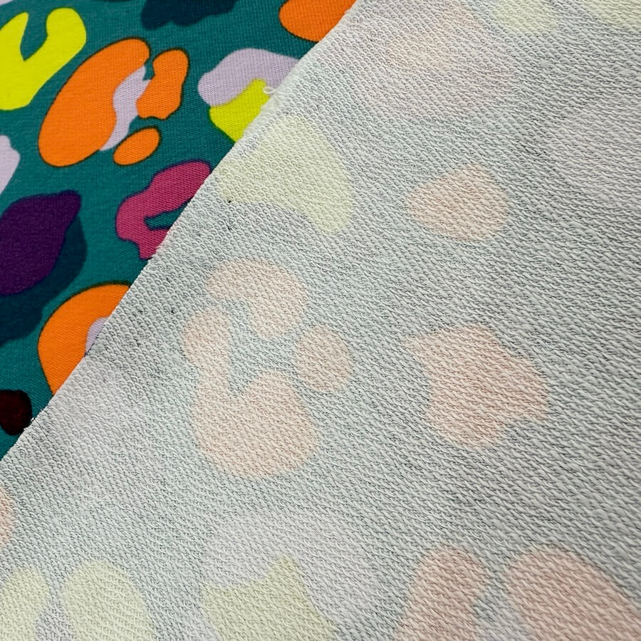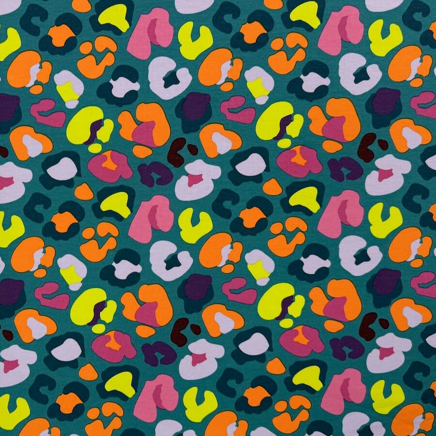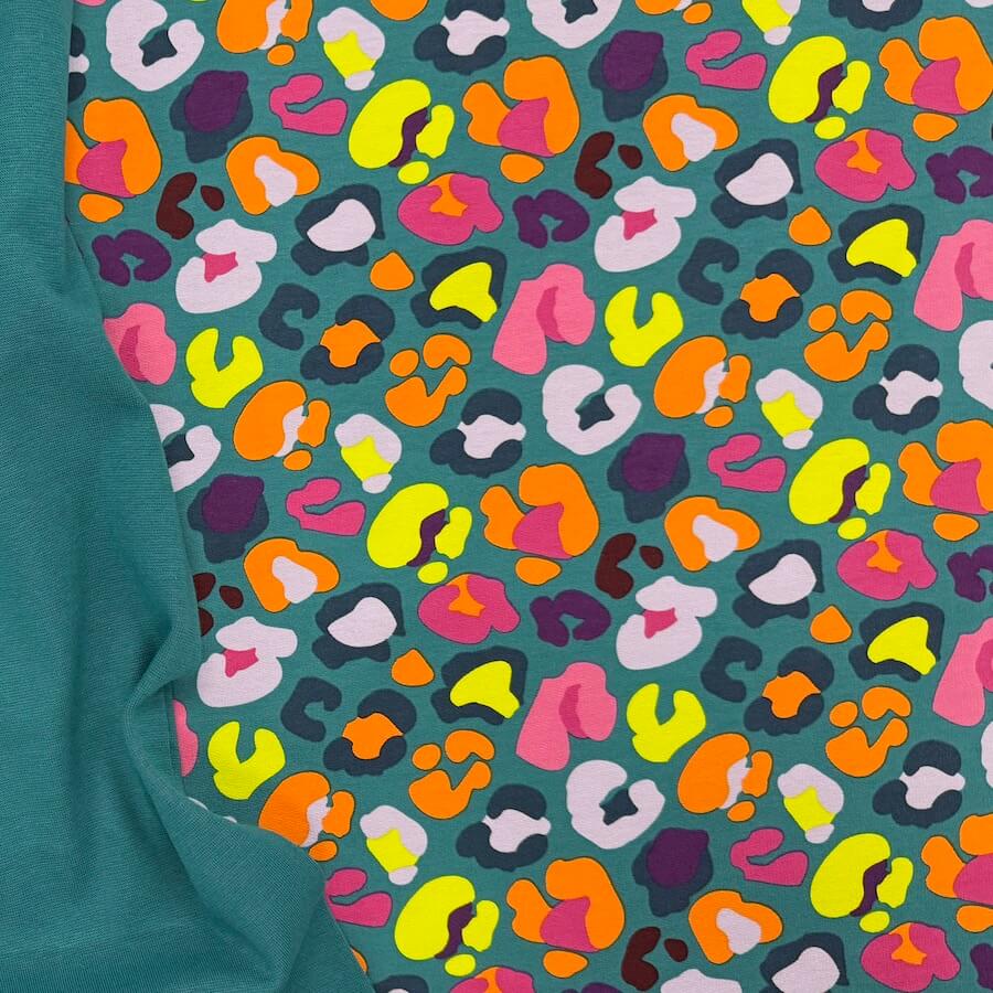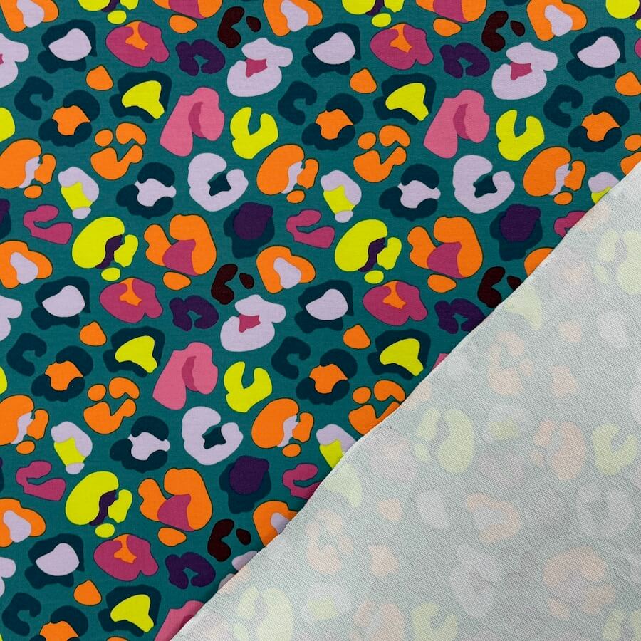 Soft Loop Back French Terry Jersey – Neon Leopard – Teal