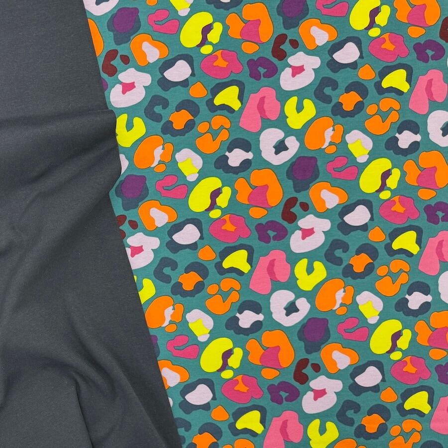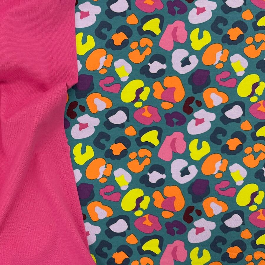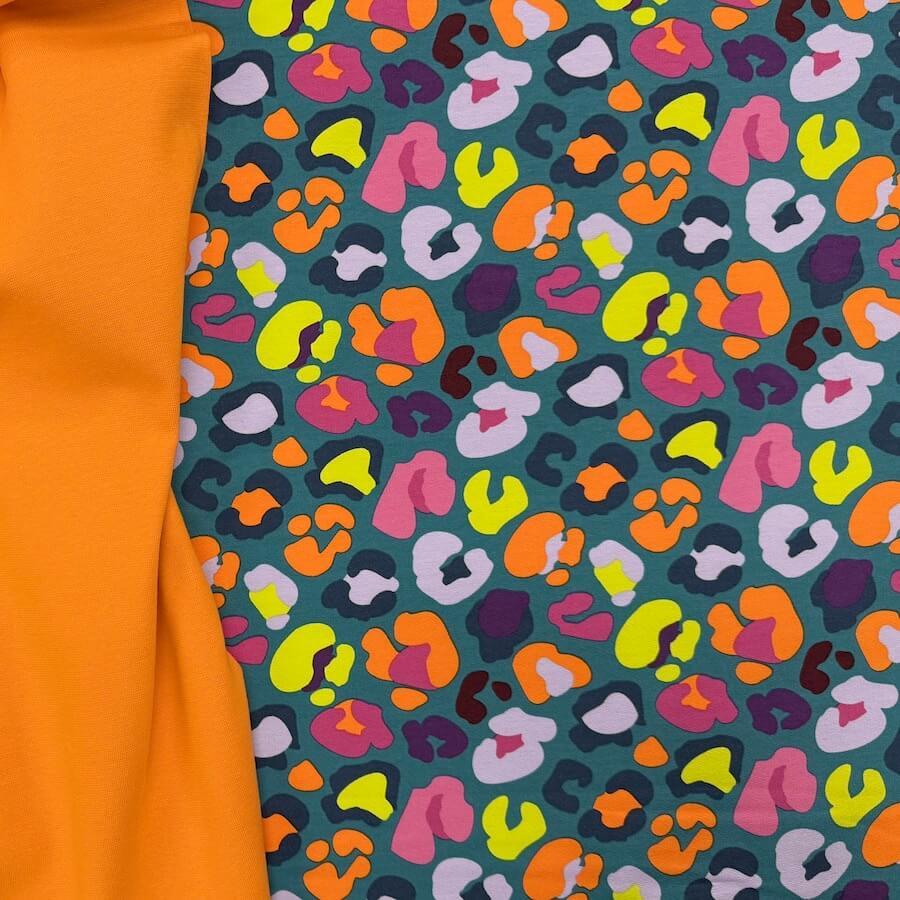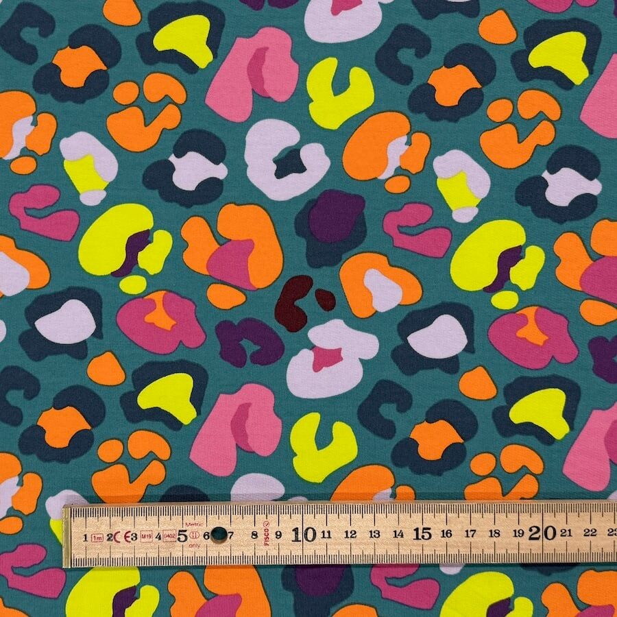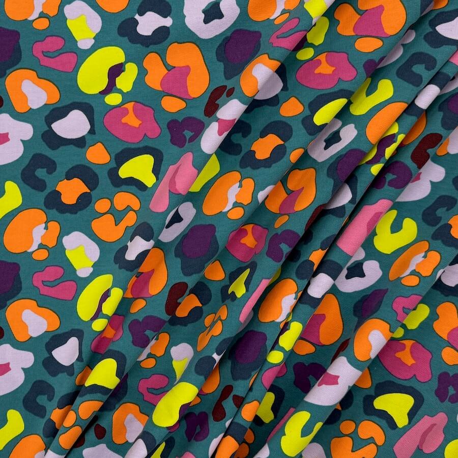 Soft Loop Back French Terry Jersey – Neon Leopard – Teal