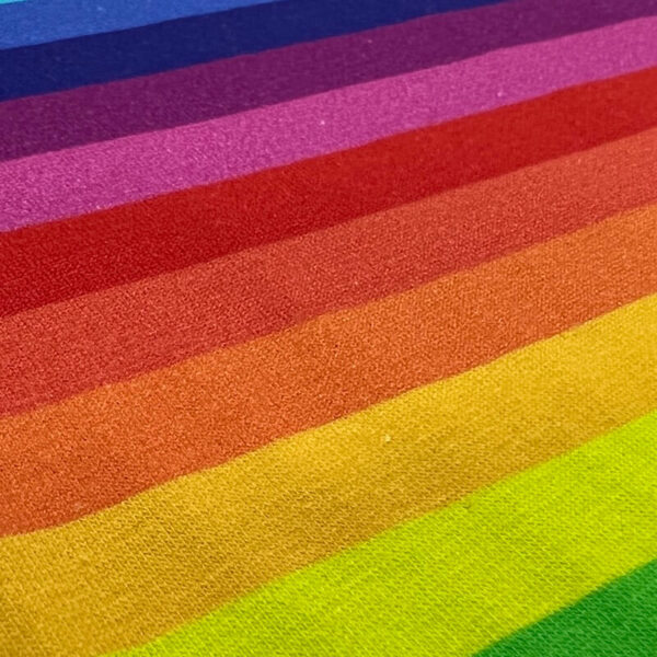 This bold rainbow striped print comes with Oeko-Tex Confidence in Textiles ‘Standard 100’ certification, making it perfectly safe for making items for babies and children. Stripes are approx 1cm wide.