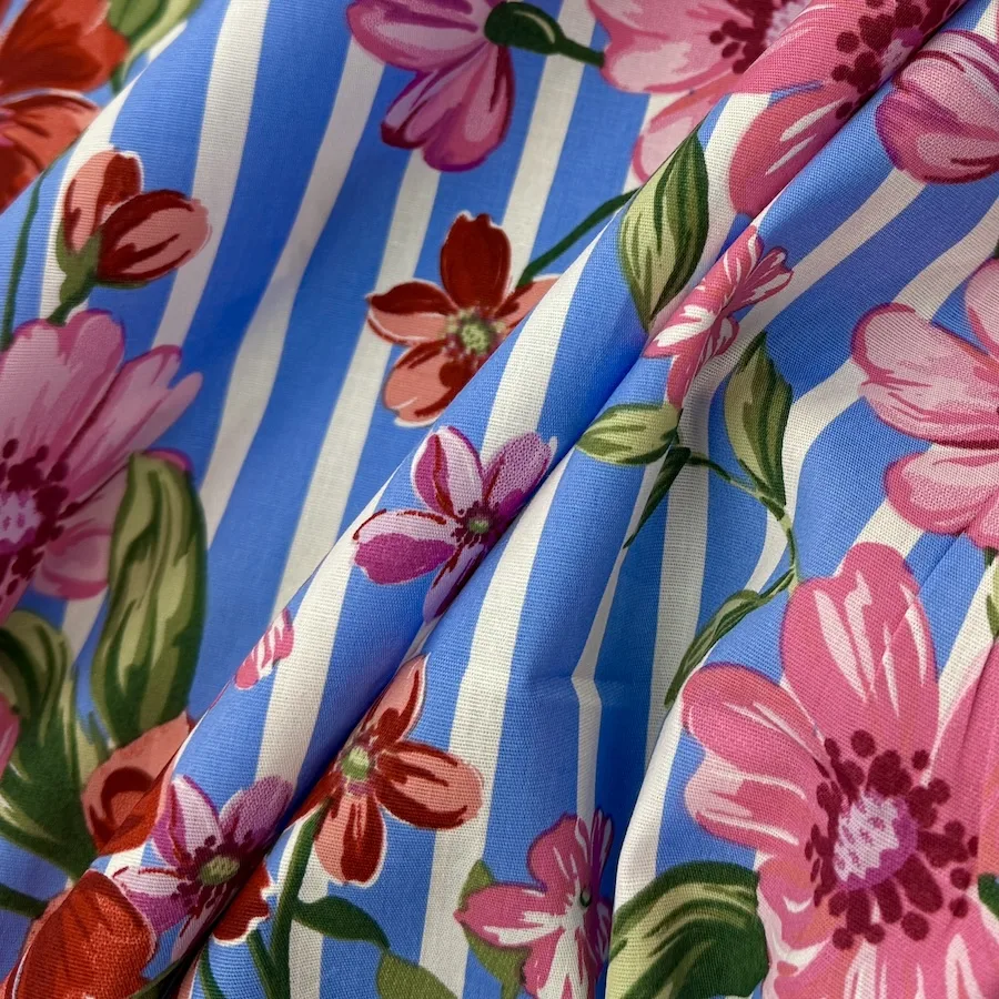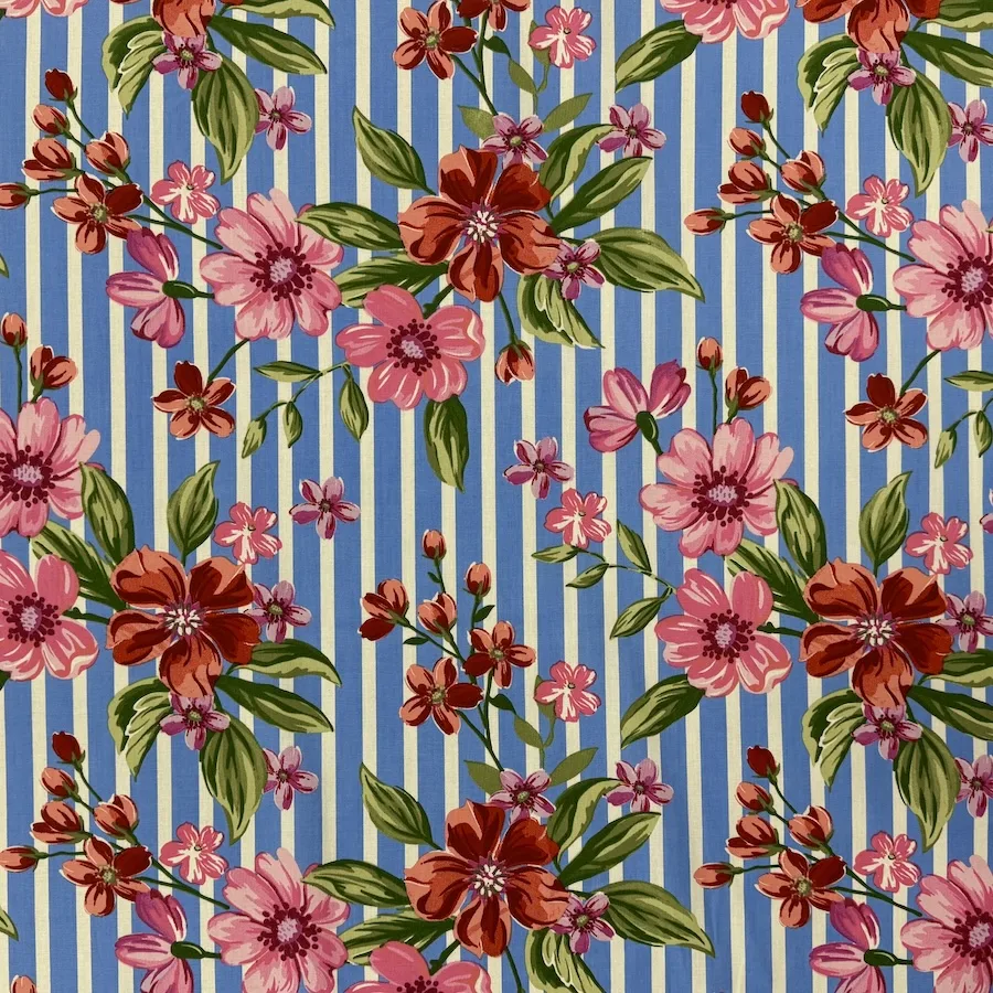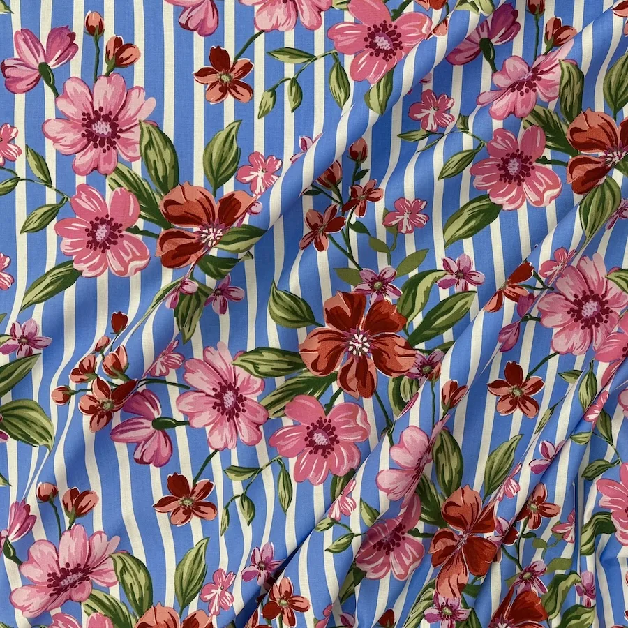 Stretch Cotton Spandex Shirting – Floral Stripe