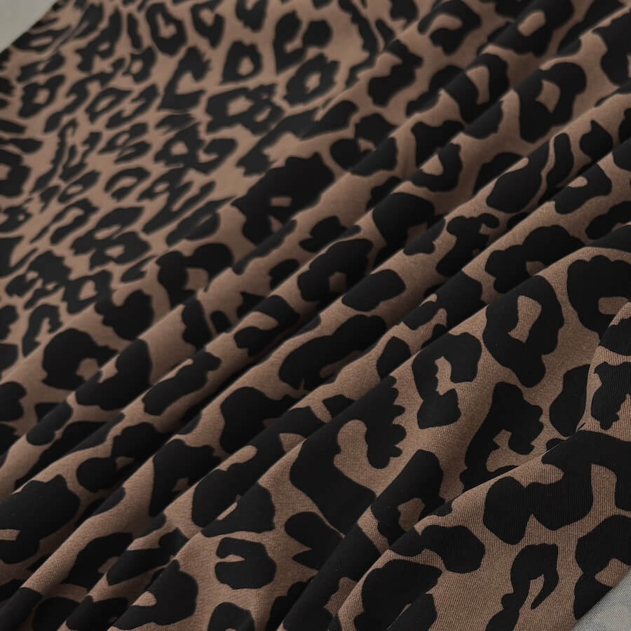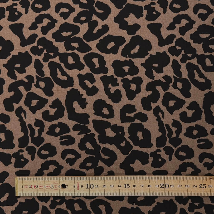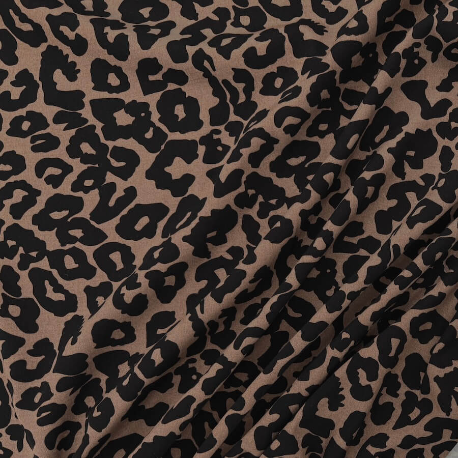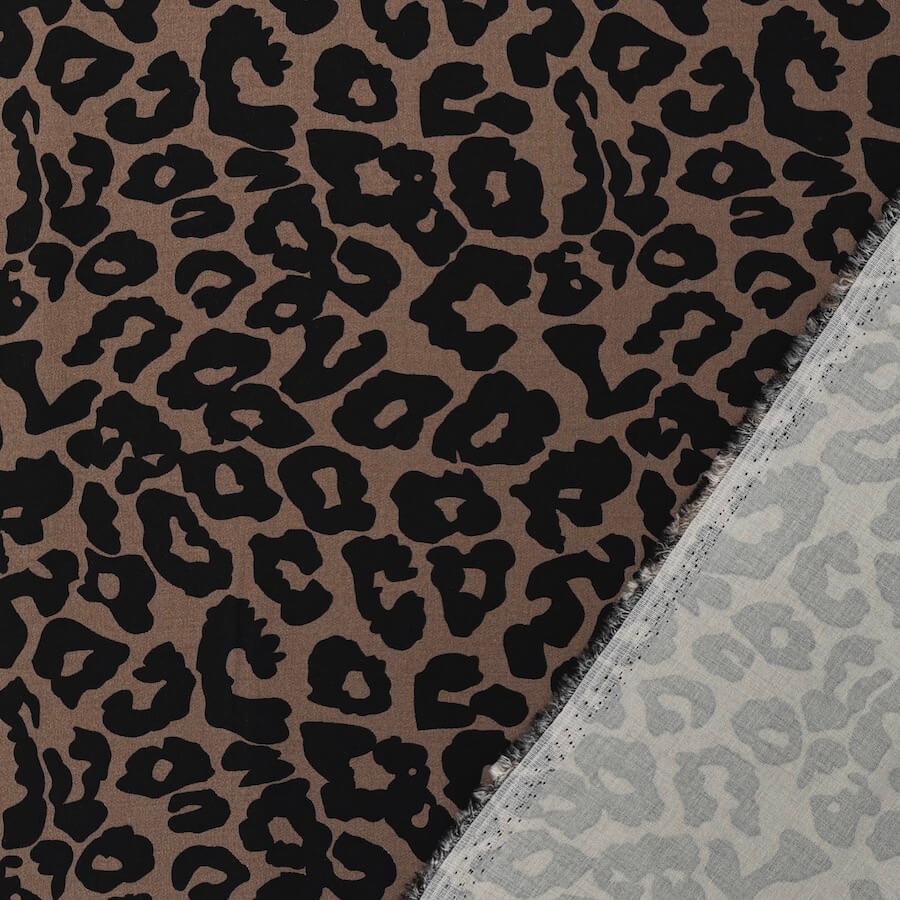 This gorgeous stretch viscose twill fabric is printed with a classic leopard print in black and brown.