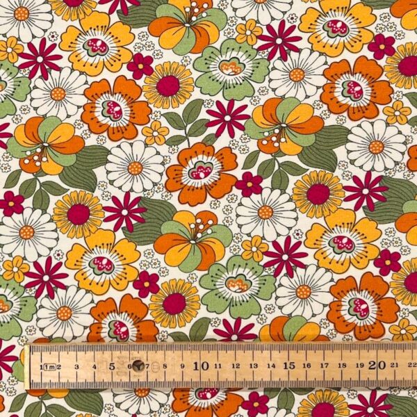 The Crafty Pie Cotton Lycra Jersey – Flower Child – Cream/Orange