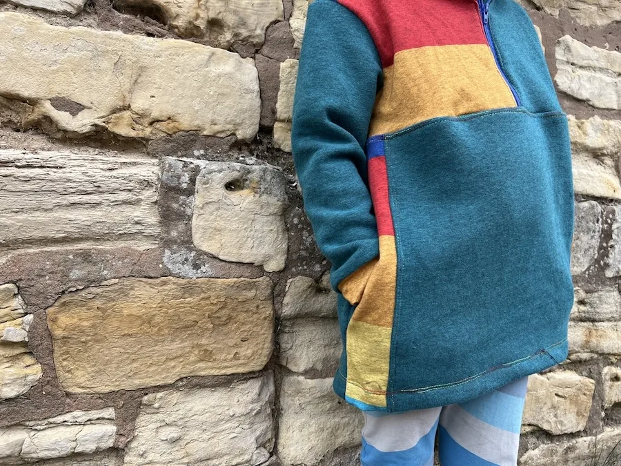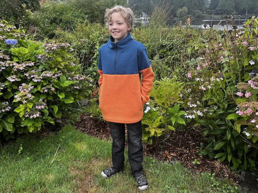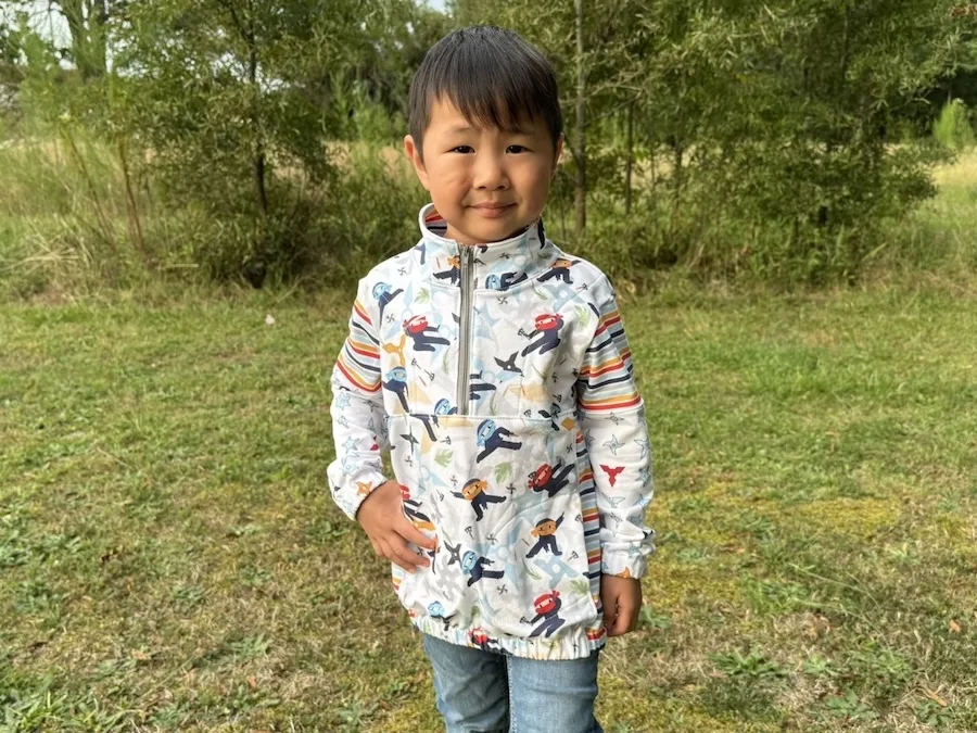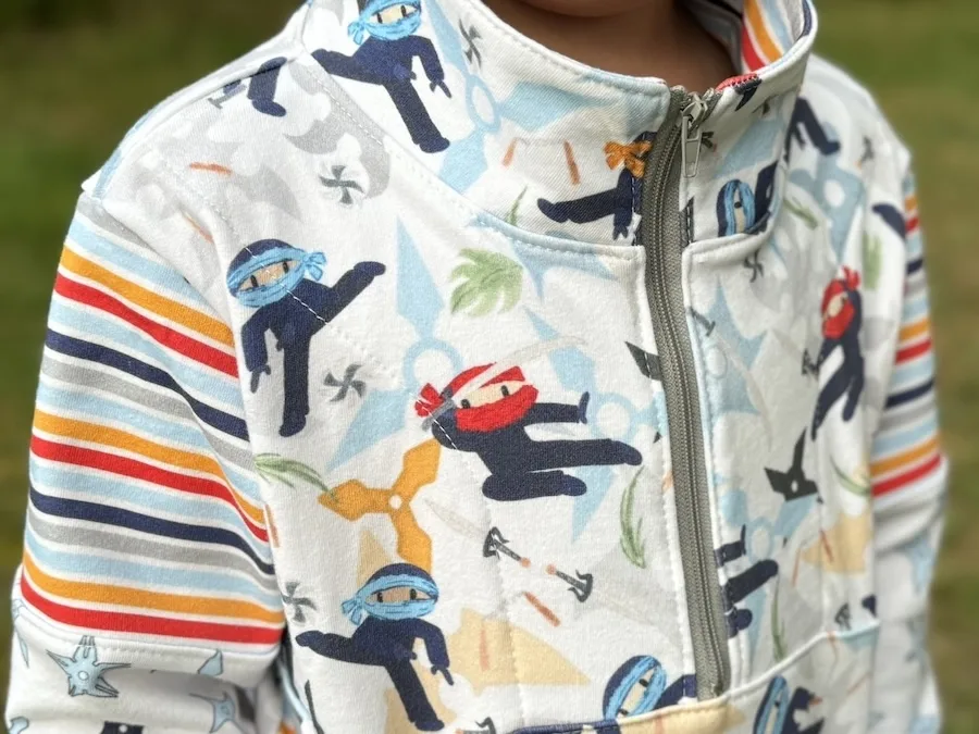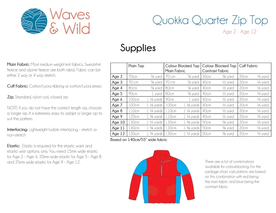 The Quokka Quarter Zip Top goes from Age 2 – Age 12. It is suitable for advanced beginners. If you’ve made another sweatshirt or t-shirt pattern and feel confident with the process then you’re ready for the Quokka! It has a relaxed, comfortable fit, perfect for any adventure!