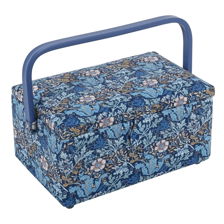 Medium sewing box covered with cotton fabric in a classic, arts and craft inspired woodblock floral print.
