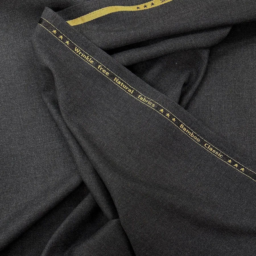 Woven Bamboo/Recycled Polyester Fibre Dyed Fabric – Dark Grey Melange