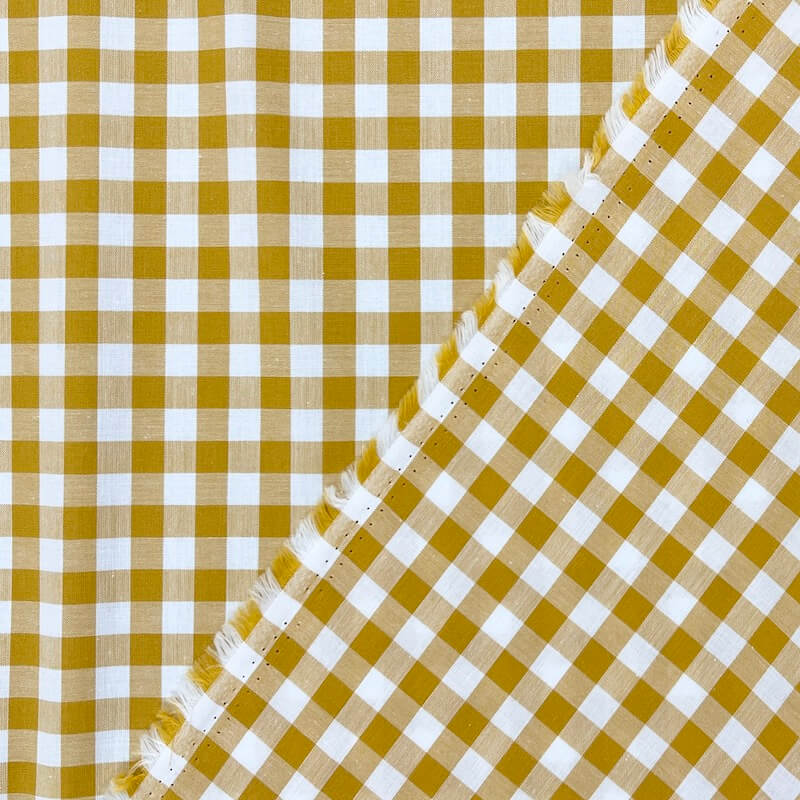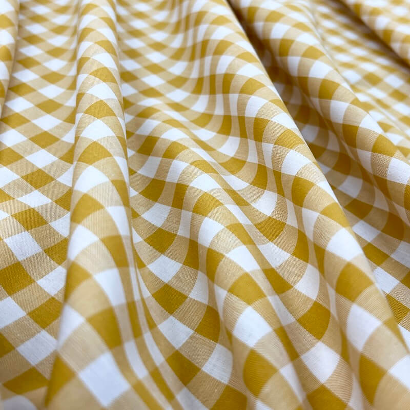Yarn Dyed 100% Cotton Gingham Midi Check – Ochre/White